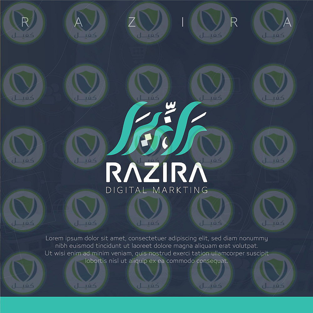 فكرة أخرى للشعار باللغة العربية عبارة عن كاليجرافي لكلمة " رازيرا " بشكل مميز ومختلف - يتعلق بالأذهان.