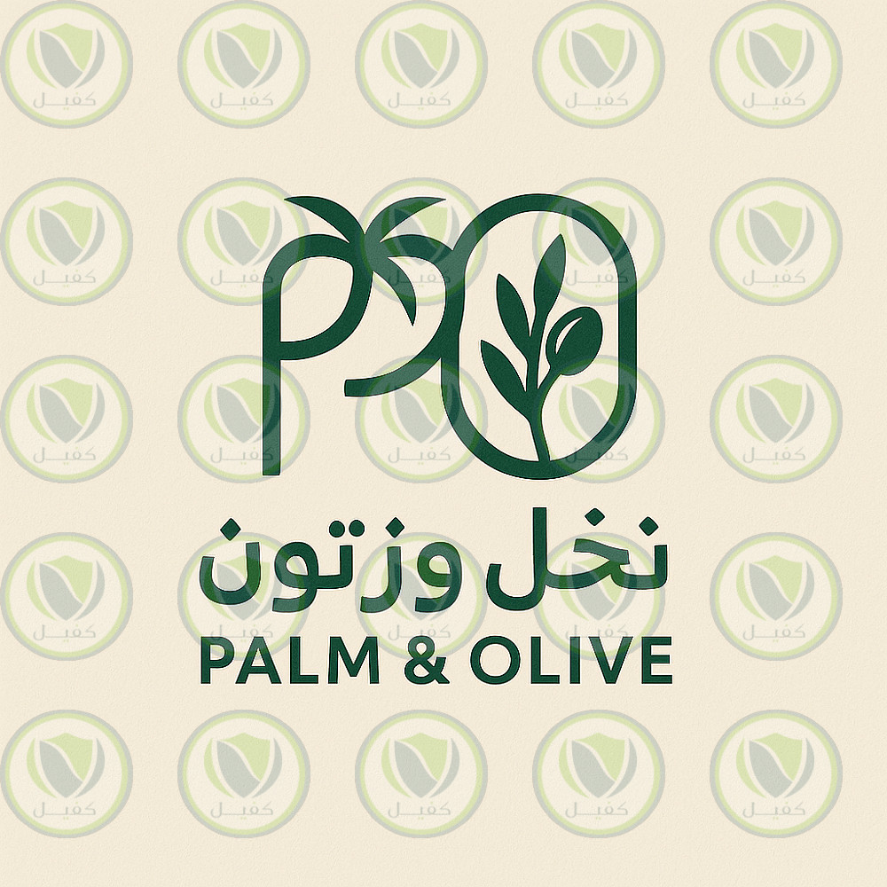 أرفق هنا النسخة النهائية من شعار "نخل وزيتون | Palm & Olive"، بعد تطوير الفكرة الأولية بما يتماشى مع كل المواصفات المذكورة في وصف المسابقة: