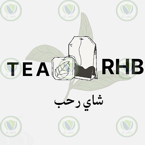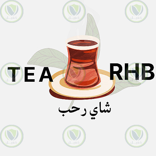 الحروف "TEA" و"RHB" تحيط بالكوب بشكل عصري يخلق توازنًا أفقيًا.