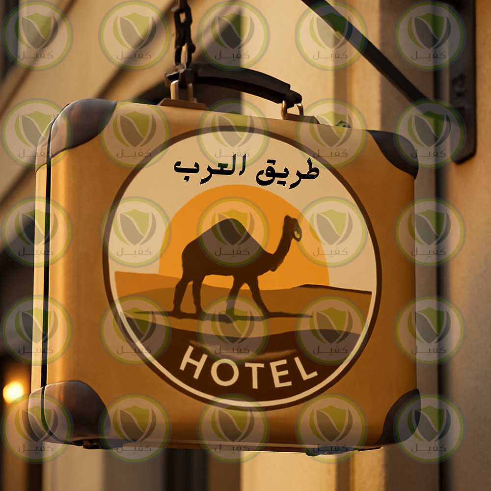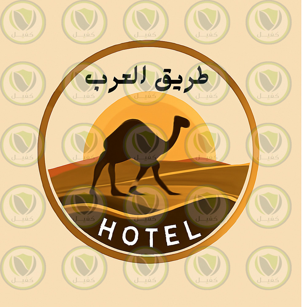 هذا الشعار يمثل الهوية البصرية لفندق "طريق العرب" بأسلوب فني يجمع بين الأصالة والحداثة. التصميم دائري الشكل، يرمز إلى التكامل والاستمرارية، ويتوسطه جمل عربي يمشي على كثبان رملية ناعمة تمثل صحراء العرب، مما يعكس روح الضيافة والرحلات التقليدية.