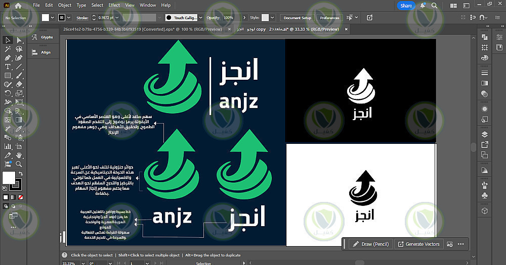 العمل اتنفذ بخطوات منظمة بداية من الرسم الأولي لغاية العرض على الـ Mockups مع مراعاة التفاصيل الصغيرة. النتيجة كانت شعار احترافي جاهز للتطبيق العملي في وقت قياسي