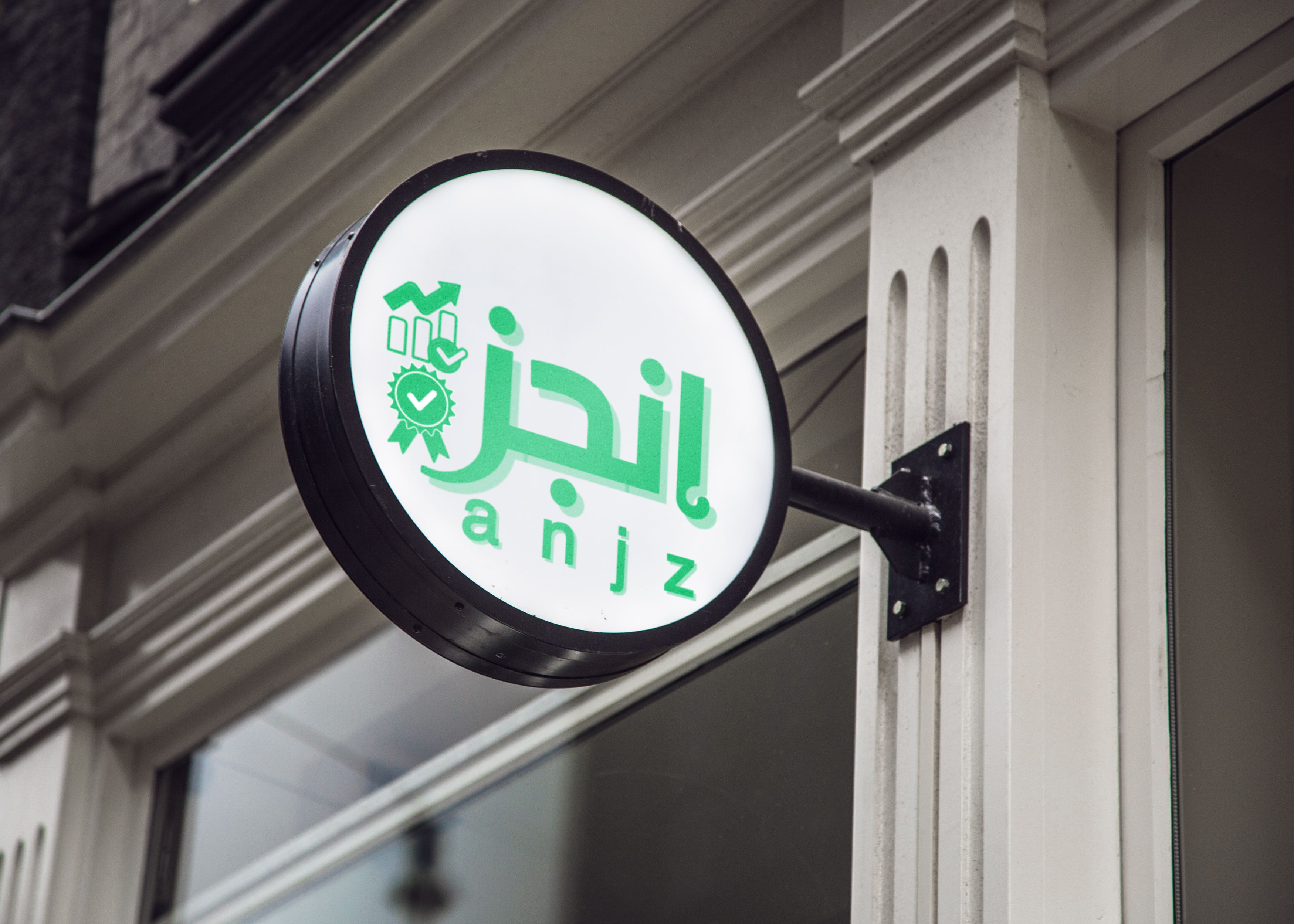 صممت نسخة عربية رئيسية ونسخة لاتينية (anjz)، كما يمكن استخدامه بأكثر من شكل (ملون – أبيض وأسود – أيقونة مبسطة).