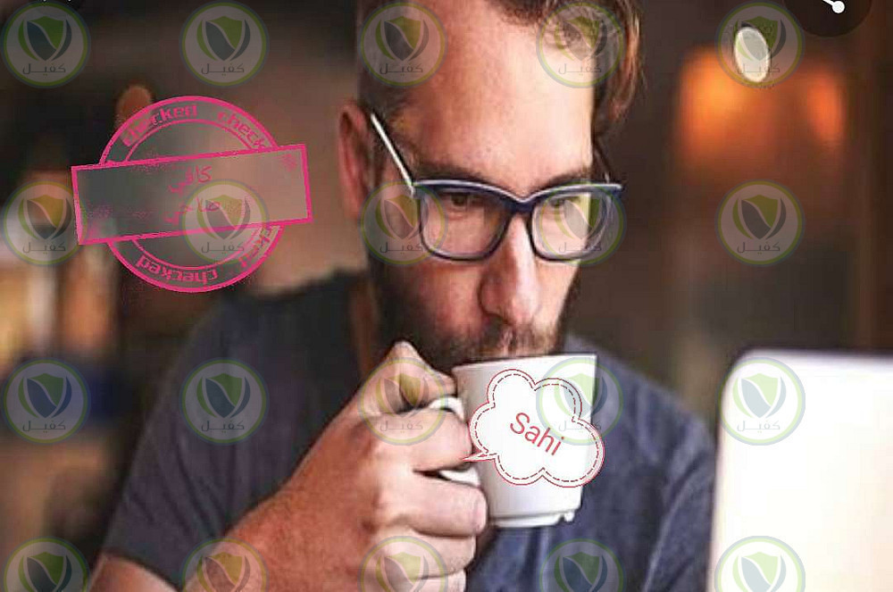 صورة شاب يشرب القهوه ومكتوب على الفنجان sahi