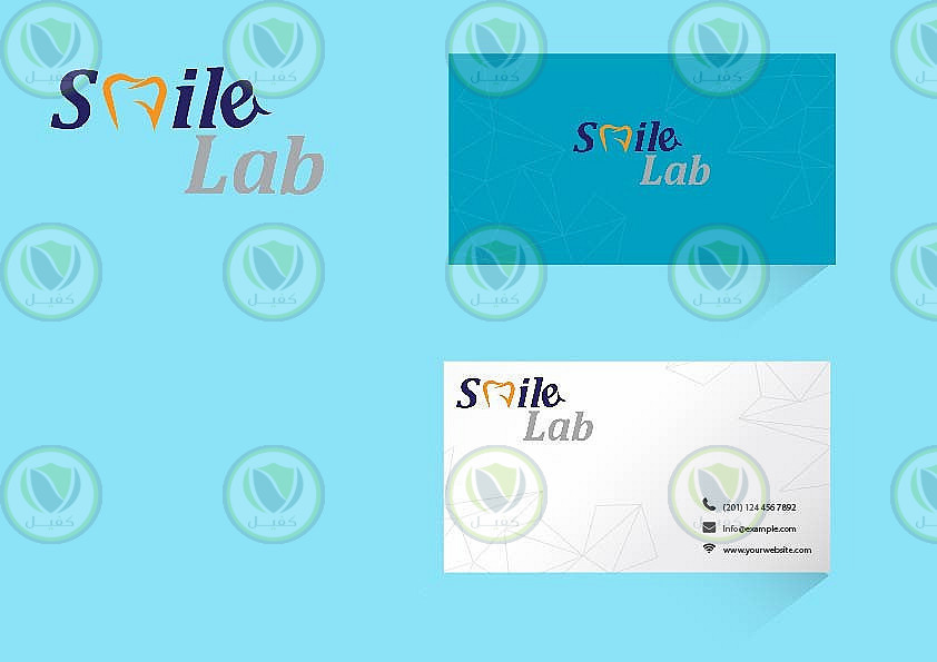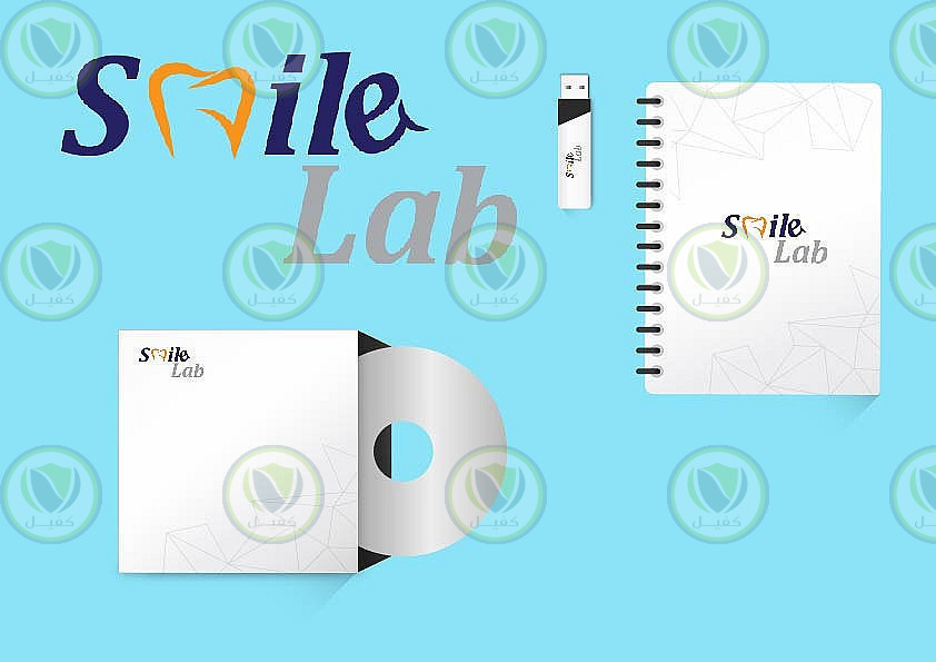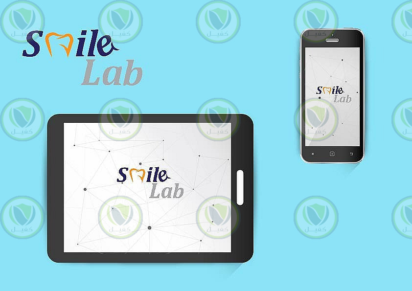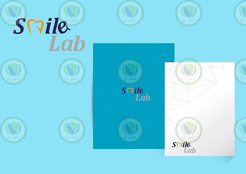 تم عمل الوصف المطلوب وتقديم لوجو كتابي ل smile lab وعمل حرف m بشكل ضرس مع ابتسامة صغيرة بنهاية كلمة smile ووضع كلمة lab مُدرجة أسفل أسفل منها مع استخدام ألوان تتبع المجال الطبي