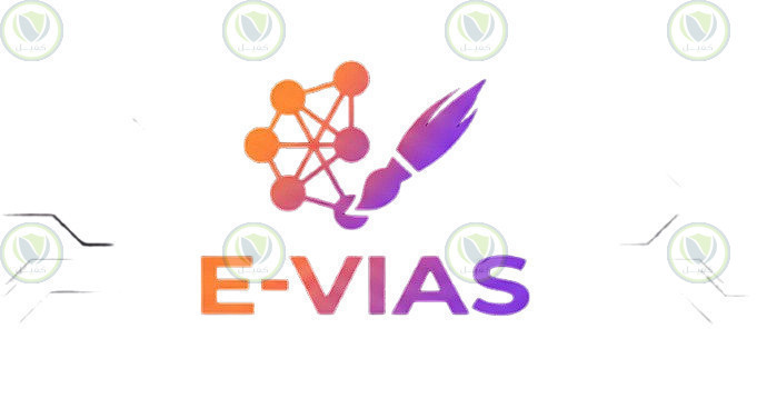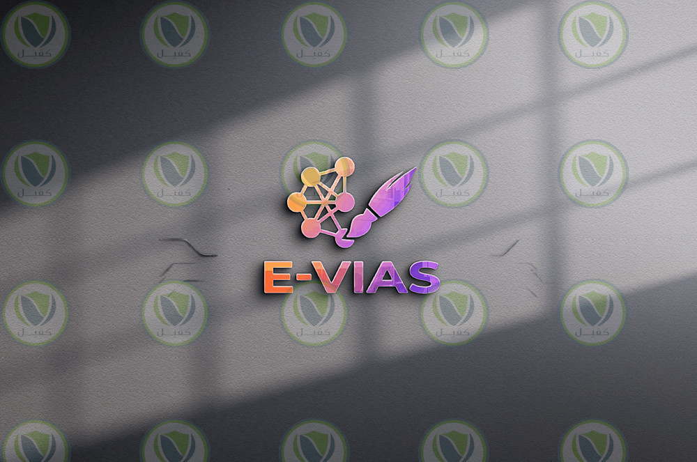 3-الخط والهوية: كتب اسم "E-VIAS" بخط عصري عريض (Sans Serif) وبنفس التدرج اللوني، ليمنح البراند طابعا قويا، مقروءا، ومرسخا في الذاكرة.
