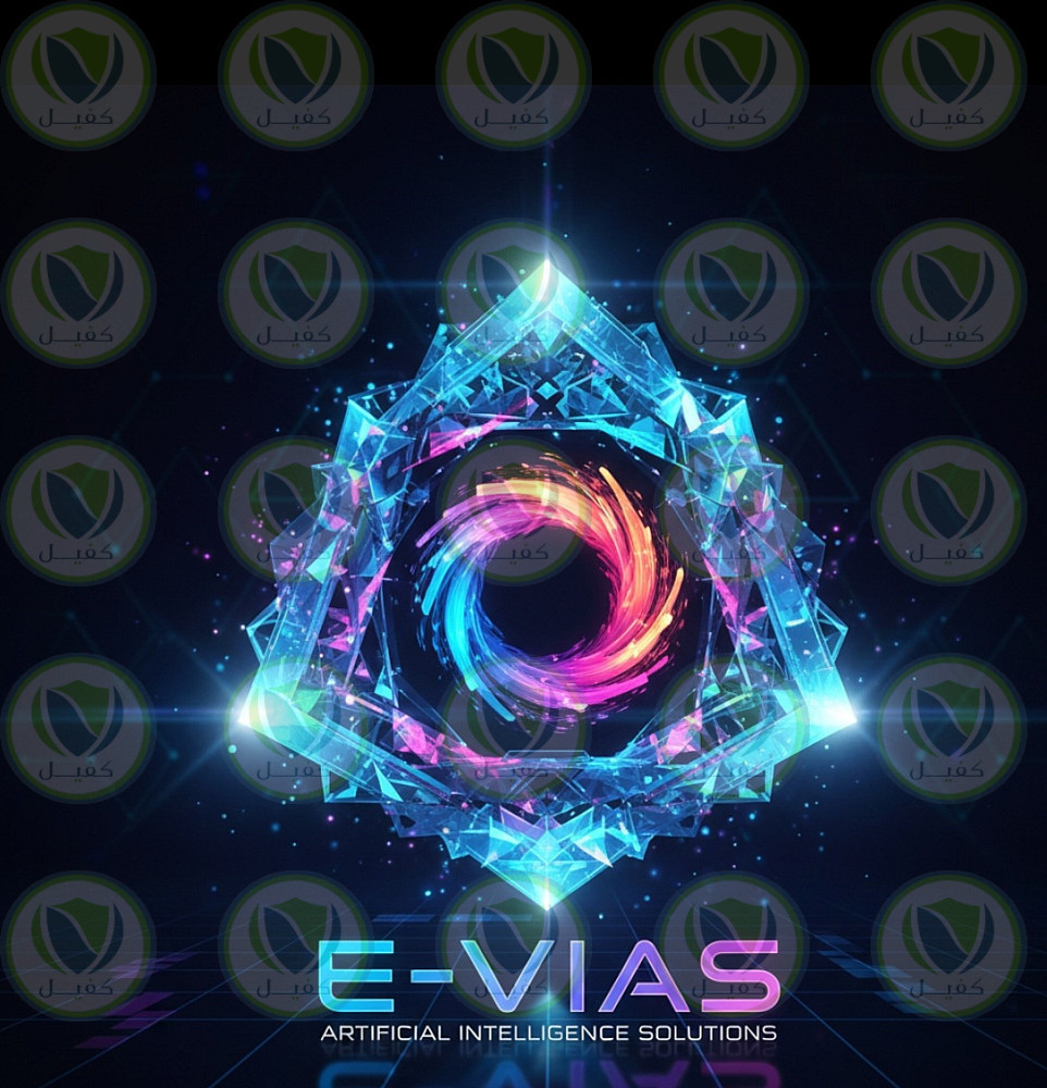 ​"تم تصميم هذه الهوية لتجسيد مفهوم الذكاء الاصطناعي الفائق (Super Intelligence). اعتمدت في الفكرة على دمج العناصر الهندسية المعقدة مع تأثيرات الضوء النيوني لتعكس السرعة والدقة التي تقدمها شركة E-VIAS. التصميم يجمع بين القوة التكنولوجية والجمالية العصرية، مع مراعاة قابليته للظهور بشكل فخم على المنصات الرقمية والمطبوعات الاحترافية."