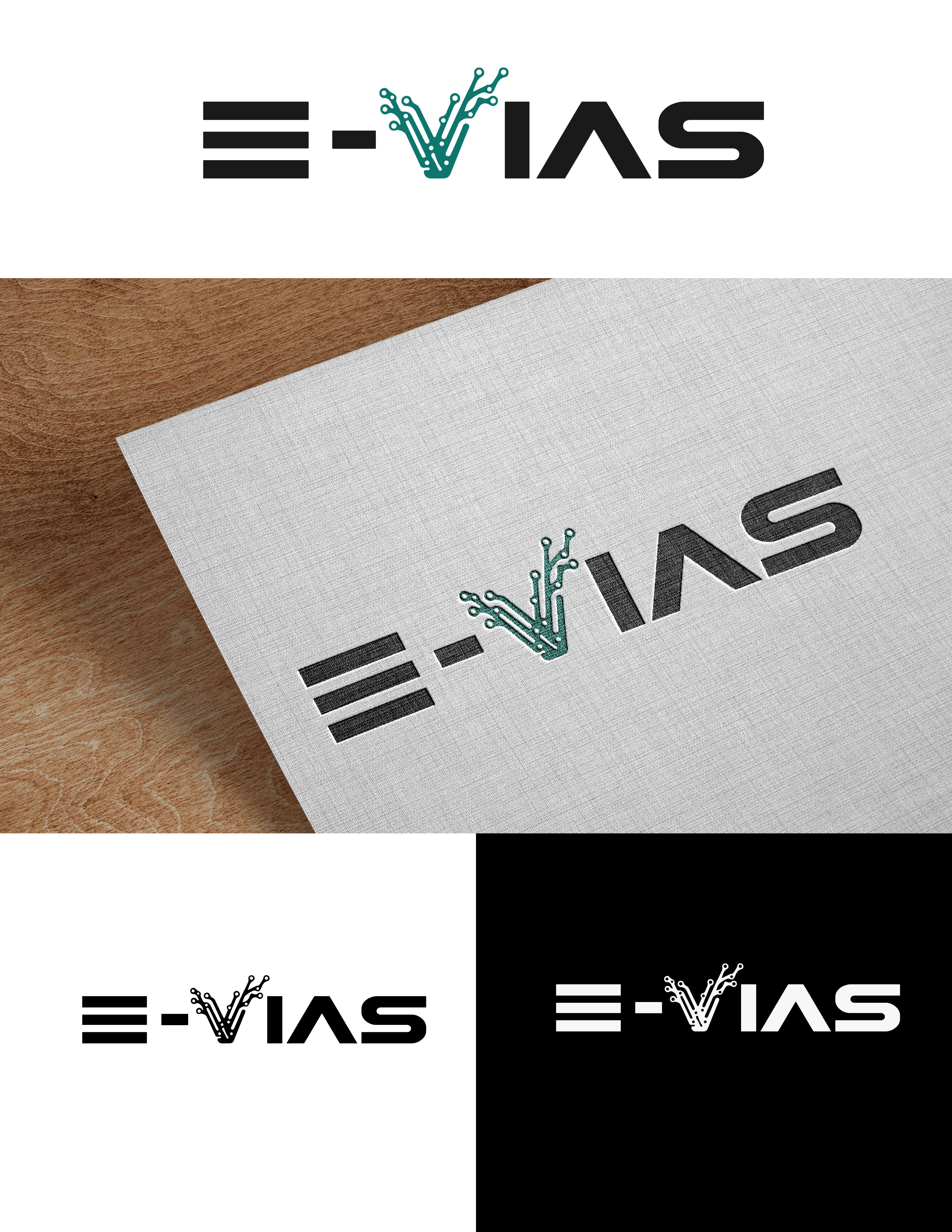 يجسد شعار E-VIAS هوية تقنية حديثة من خلال تصميم بسيط وذكي، حيث تم تجريد حرف E بأسلوب هندسي ليعكس السرعة والتنظيم، بينما يأتي حرف V مدمجًا مع مسارات إلكترونية ترمز إلى الابتكار وتدفق البيانات. يعزز الخط القوي إحساس الثقة والاحترافية، ويمنح التباين اللوني الشعار حضورًا واضحًا وسهل التذكر، ليعبر عن علامة تتبنى التكنولوجيا وتقود نحو المستقبل.