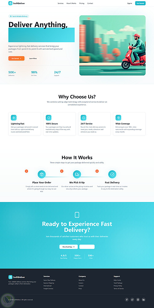 صفحة هبوط (landing page) لشركة توصيل SwiftDeliver