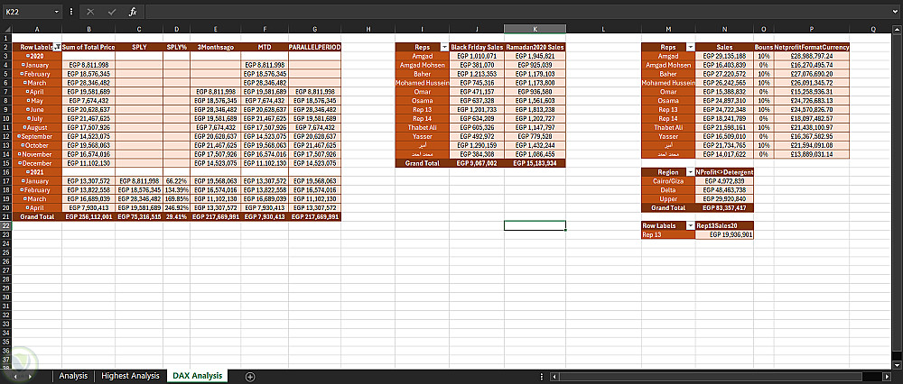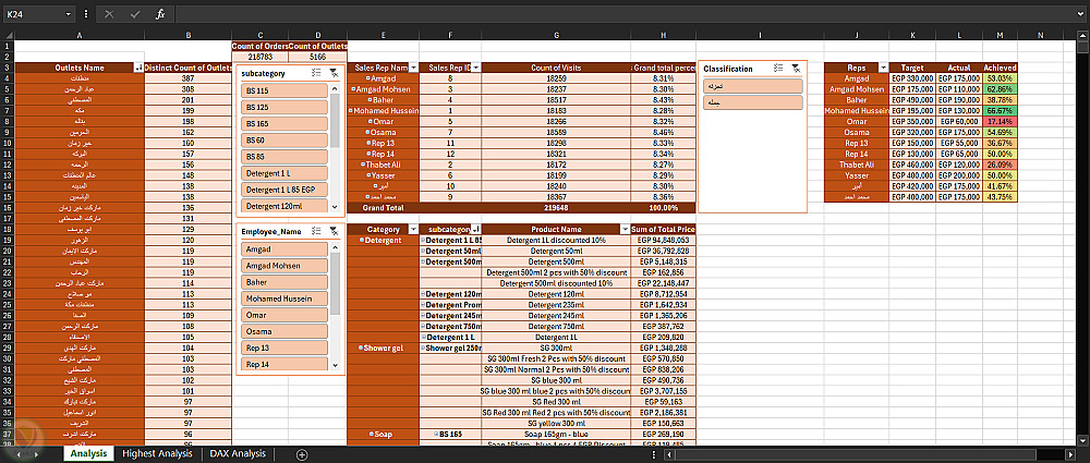 - إعداد تقارير تفصيلية على اكسيل لتحليل أداء مندوبي المبيعات مقارنة بالأهداف المحددة.