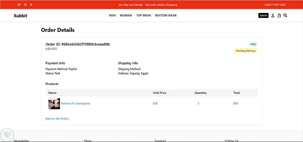 الإدارة: لوحة تحكم (Dashboard) شاملة لمتابعة الطلبات، إدارة المخزون، والتحليلات.