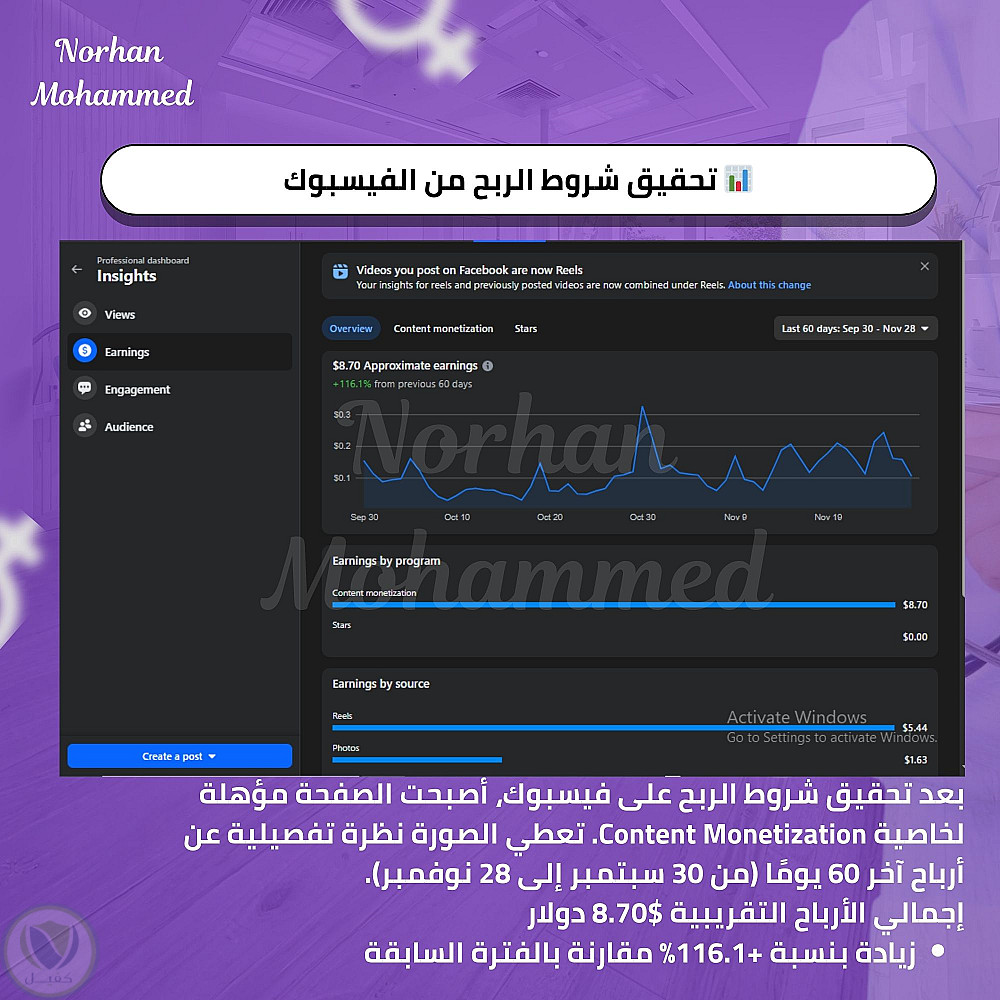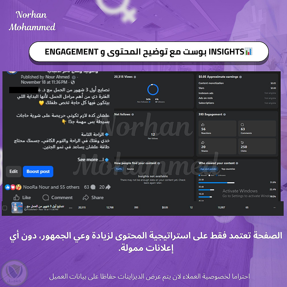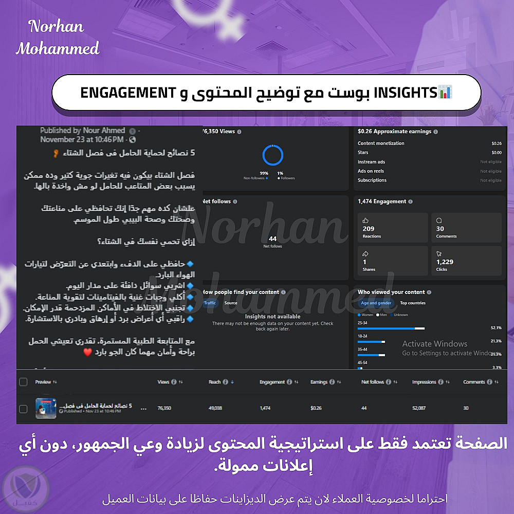 تحليل نتائج صفحة دكتورة نساء و توليد مع تحقيق شروط الربح لمنصة Facebook