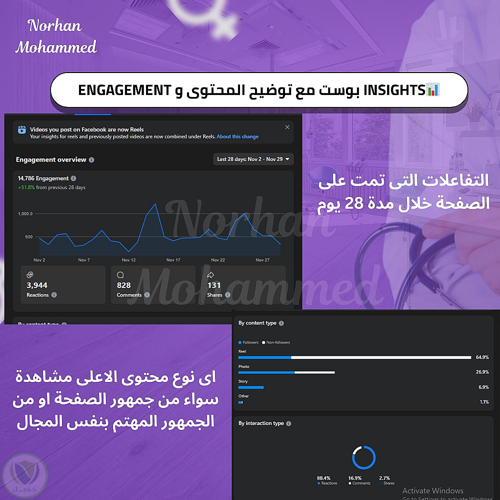 Reels: 57.4% من إجمالي المشاهدات — الأقوى والأكثر فاعلية.
