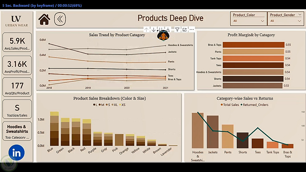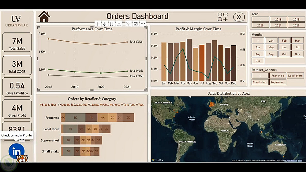 الحل والأثر: تم تطوير لوحة تحكم شاملة في Power BI لربط بيانات المبيعات والطلبات والإرجاعات. تضمن المشروع بناء نموذج بيانات Star Schema باستخدام Power Query (ETL) لدمج الجداول وتقنيات DAX لإنشاء مقاييس دقيقة مثل هامش الربح ونسبة الإرجاع. كشف التحليل عن أعلى معدلات الإرجاع في منتجات محددة (مثل السترات والسراويل) وتدهور هامش الربح في فترات معينة. الأثر: مكن هذا الحل العميل من الانتقال إلى استراتيجية تسعير ومخزون محسّنة، مما أدى إلى تقليل الإرجاعات عالية المخاطر وضمان تحويل أحجام المبيعات إلى نمو مستدام في الأرباح.