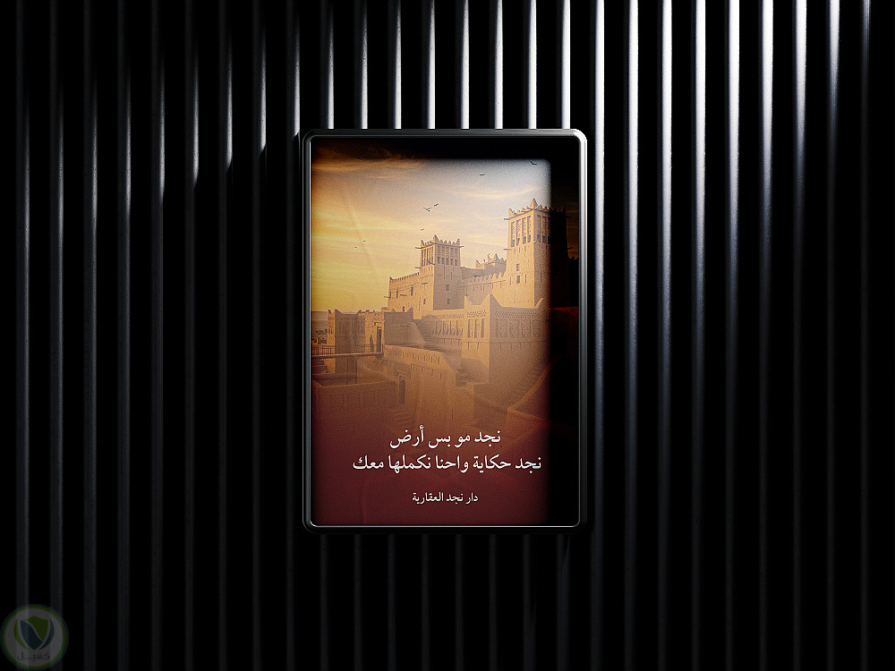 يعكس شعار دار نجد العقارية الهوية المعمارية الأصيلة لمنطقة نجد من خلال أيقونة مبسطة لمبانٍ تقليدية بنمط خطي مستوحى من القلاع والبيوت النجدية التاريخية التي ترمز إلى الثبات والقوة والعمق الحضاري ويأتي الأسلوب البصري العصري ليمنح الشعار طابعًا حديثًا وموثوقًا ويعبر عن توازن واضح بين التراث والحداثة بما يعكس عقارات ذات جذور راسخة وقيمة مستدامة