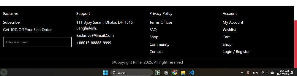 Exclusive هو متجر إلكتروني حديث مصمم ليمنحك تجربة تسوق سهلة وآمنة. أنشئ حسابك الآن بخطوات بسيطة، واستمتع بالوصول إلى مجموعة واسعة من المنتجات، وعروض حصرية، وتوصيات مخصصة لك. بواجهة نظيفة وتصميم متجاوب، نضمن لك تجربة سلسة وحماية كاملة لبياناتك أثناء التسوق.