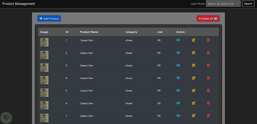 موقع واجهة امامية ادارة منتجات CRUD مصمم ب ( CSS & HTML & Bootstrap & JavaScript )
