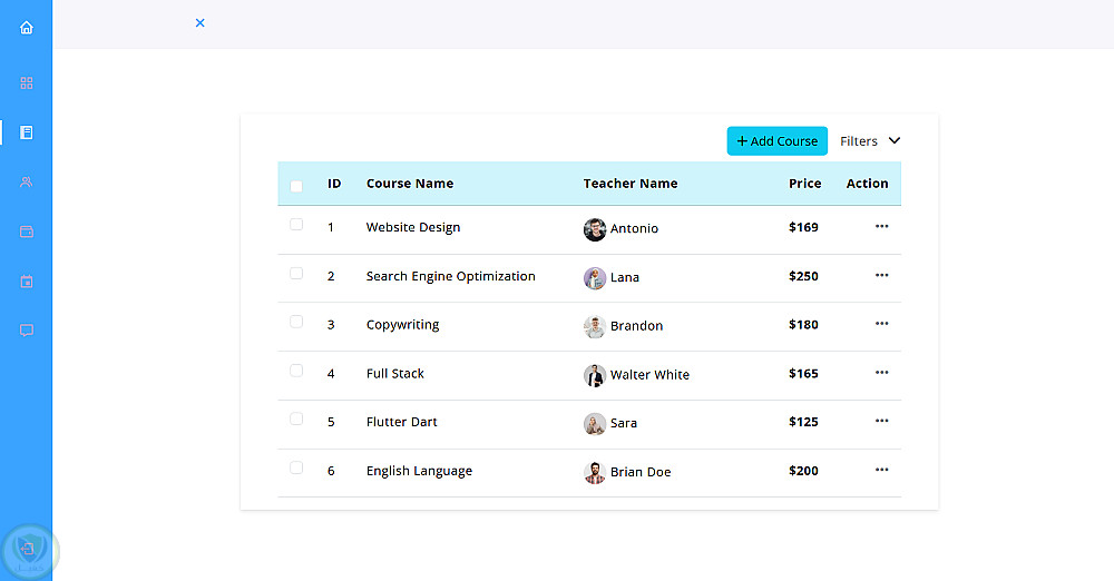 موضوع الموقع هو شركة لعرض الدورات والمدرسين
