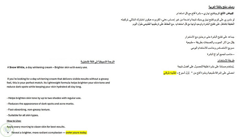 قمت بعمل ترجمة إبداعية تسويقية من اللغة العربية إلى اللغة الإنجليزية.
