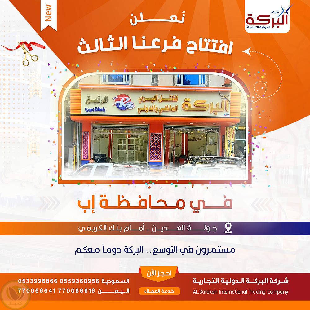 الفكرة: الإعلان عن التوسع الجغرافي للشركة في محافظة إب بأسلوب احتفالي.