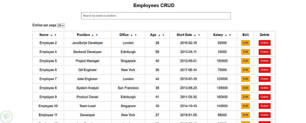 نظام إدارة موظفين بسيط تم تطويره باستخدام Vanilla JavaScript، يوضح عمليات CRUD (إنشاء، قراءة، تعديل، حذف)، بالإضافة إلى البحث، الفرز، والتحكم بعدد العناصر المعروضة في الصفحة باستخدام REST API. يركز المشروع على منطق الجافاسكربت، التفاعل مع DOM، والتكامل مع واجهات برمجة التطبيقات (API) مع تقديم واجهة مستخدم نظيفة وسهلة الاستخدام. يمثل المشروع نموذجًا عمليًا لتطبيق أنظمة إدارة بيانات الموظفين بطريقة منظمة وفعالة.
