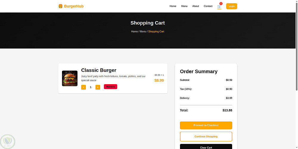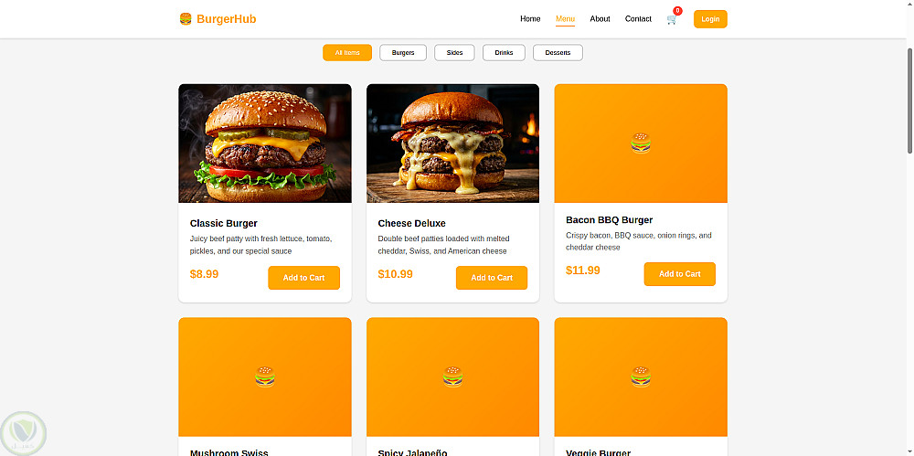 موقع تلقي طلبات مطعم – Burger Website