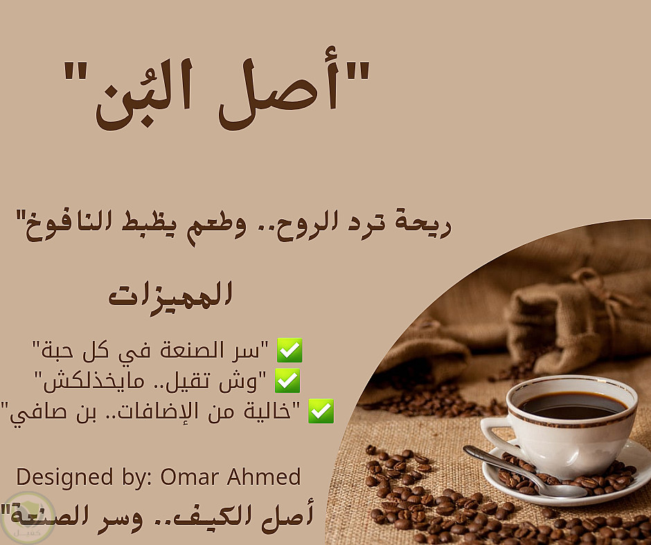 نموذج لتصميم إعلاني لمنتج "بن صافي"، ركزت فيه على:
