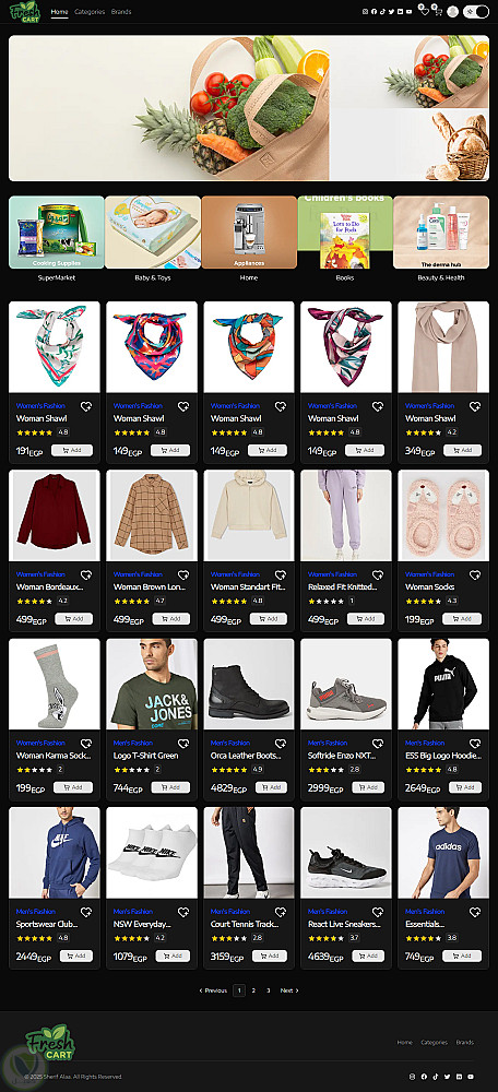 مشروع متجر إلكتروني حديث يركز على تجربة المستخدم (UX) والأداء العالي. تم بناء المشروع ليكون منصة بيع متكاملة تتيح للمستخدمين تصفح المنتجات، إدارتها، وإتمام عمليات الشراء بسلاسة.