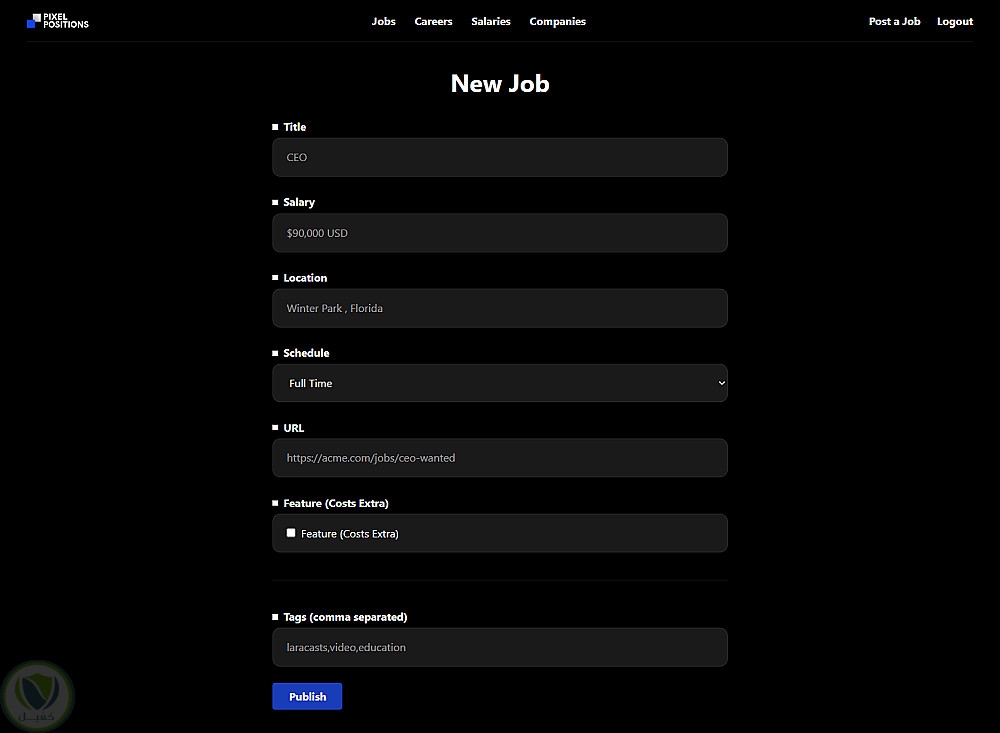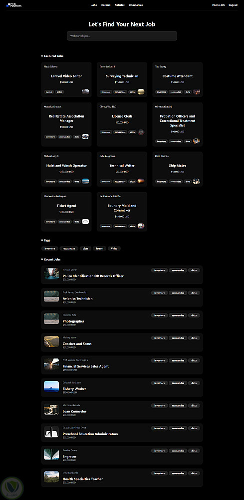 Pixel Positions – تطبيق لوحة وظائف قائم على Laravel يسمح للمستخدمين بإضافة وإدارة قوائم الوظائف، ويدعم التصفية القائمة على Tags، ويتميز بواجهة سهلة الاستخدام.