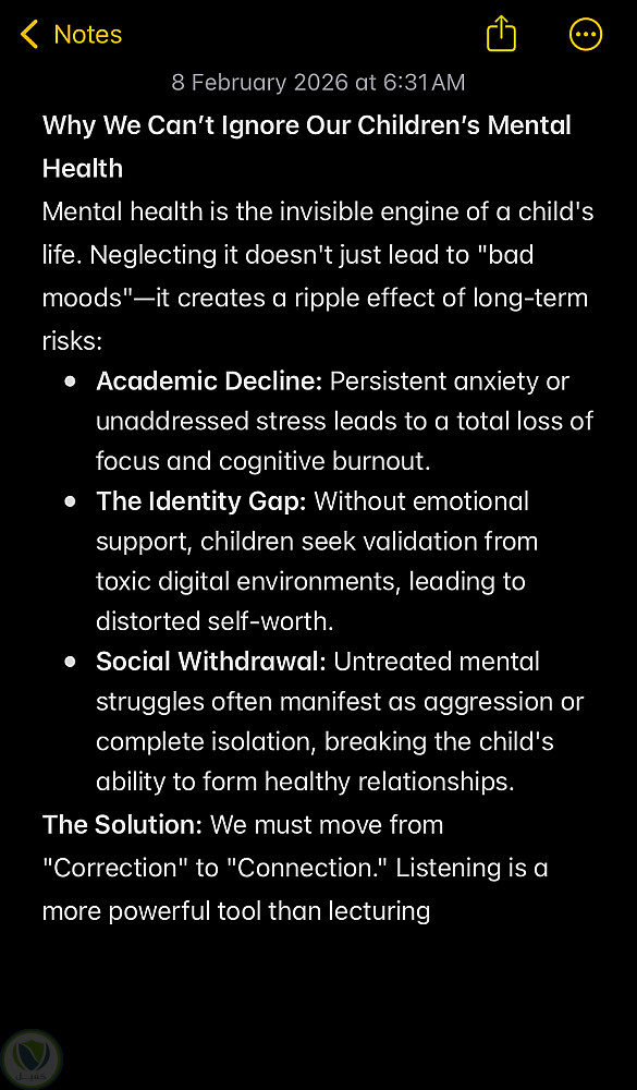 طلبت مني طبيبة نفسية كتابة محتوى موجز جداً لندوة توعوية للأهل. كان الهدف هو تلخيص مخاطر إهمال الصحة النفسية للأطفال في نقاط سريعة ومؤثرة.