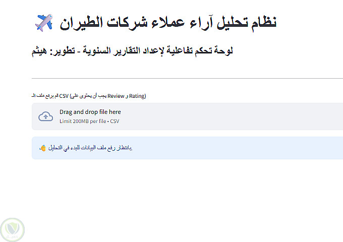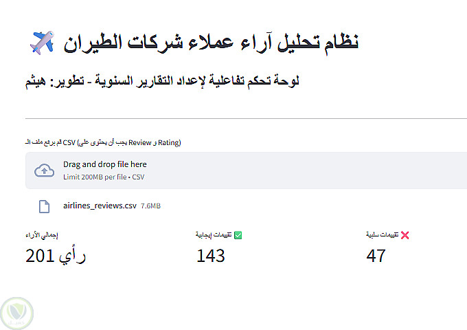 نظام ذكي (AI) لتحليل انطباعات المسافرين لشركات الطيران واستخراج تقارير استشارية تفاعلية