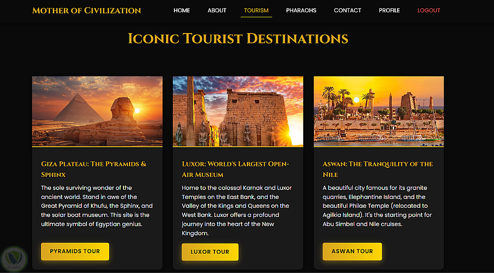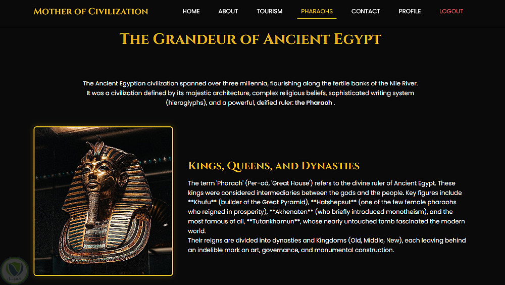 (Home – About – Tourism – Pharaohs – Contact – Profile)