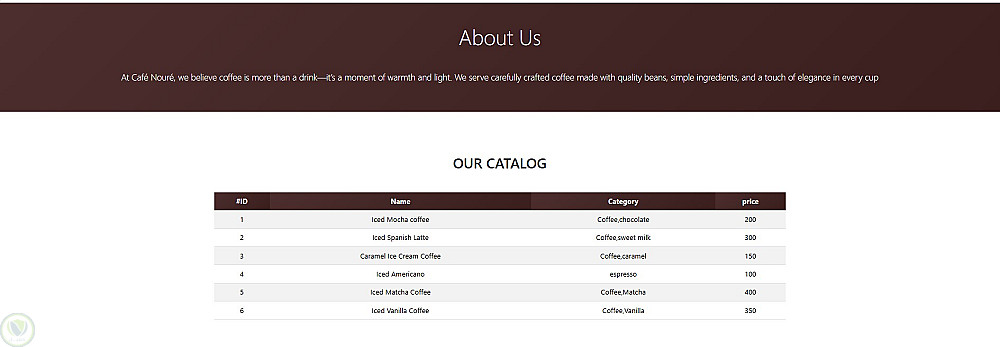 تم تنفيذ موقع إلكتروني لكافيه بتصميم عصري وجذاب باستخدام HTML وCSS وBootstrap، مع الاهتمام بتناسق الألوان وسهولة التصفح. يحتوي الموقع على صفحة رئيسية تعرض العروض الترويجية وقسم لعرض أحدث المشروبات مع تصميم متجاوب يعمل بكفاءة على مختلف الشاشات (Desktop – Tablet – Mobile). يهدف المشروع إلى إبراز هوية الكافيه وتقديم تجربة مستخدم سلسة وبسيطة.