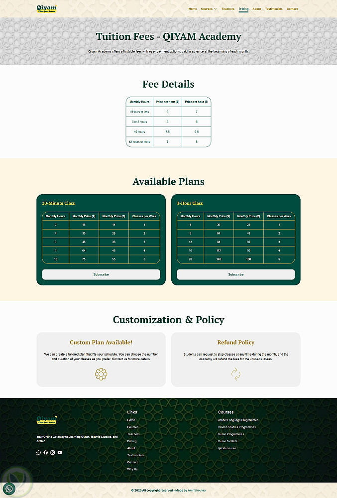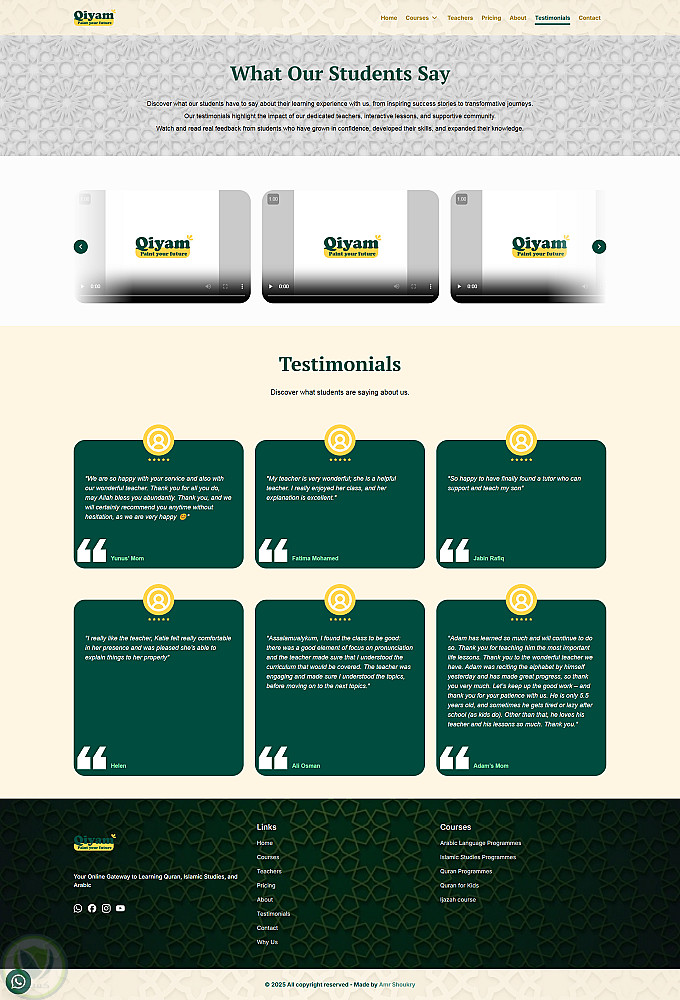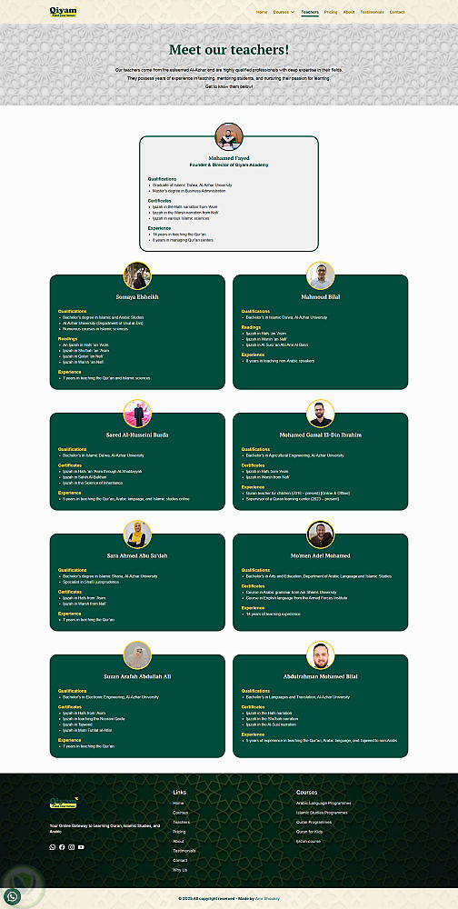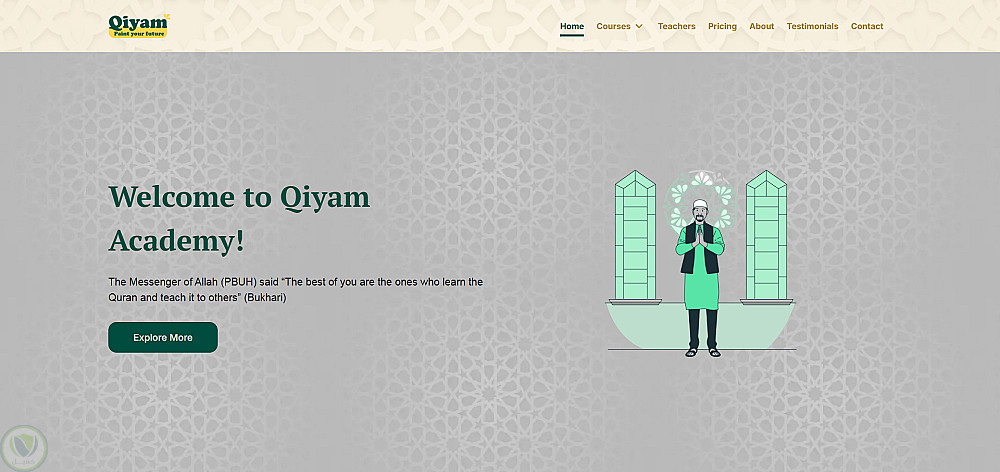 طوّرت منصة أكاديمية إسلامية باستخدام Next.js وMotion Framer وReact Hook Form وTailwind CSS وReact Query وReact وTypeScript.