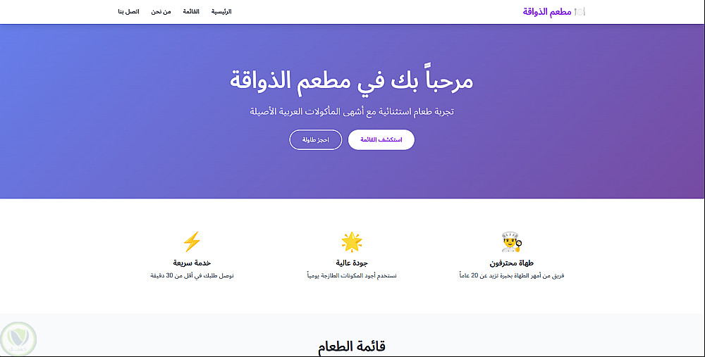 Restaurant Website – موقع مطعم احترافي بواجهة تفاعلية