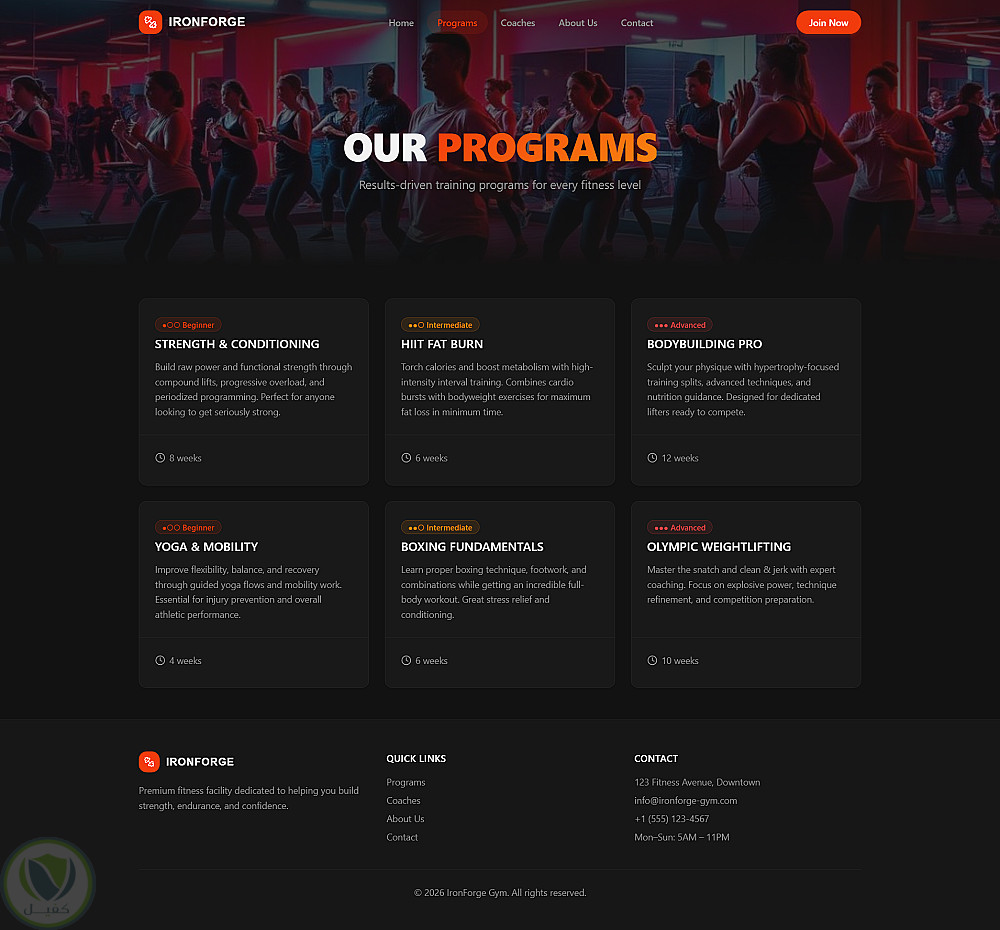 تصميم وانشاء موقع احترلفي ومميز لصاله رياضيه