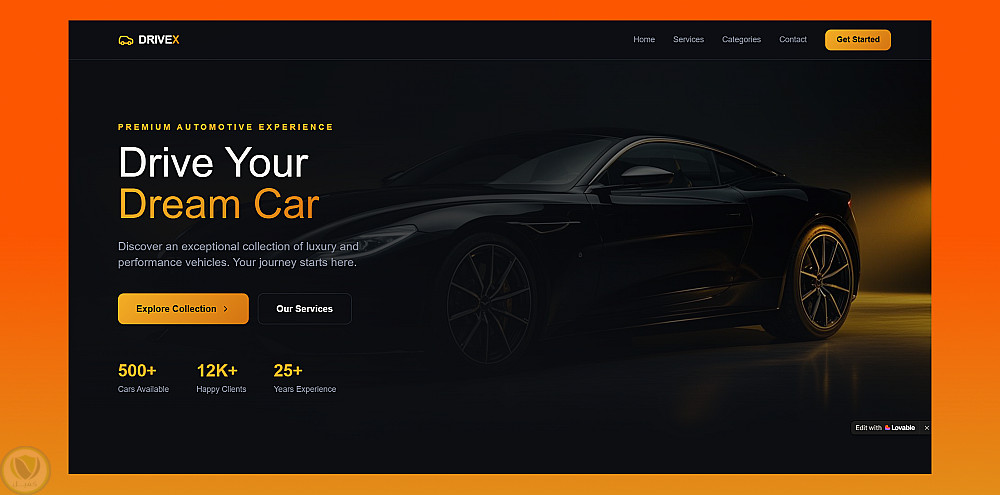 تم تصميم هذا الموقع ليكون واجهة رقمية متكاملة لشركة سيارات رائدة، حيث يجمع بين الأناقة البصرية وسهولة الاستخدام. اعتمدت في هذا التصميم على "الوضع المظلم" (Dark Mode) مع لمسات من اللون البرتقالي الذهبي لإضفاء شعور بالفخامة والقوة.