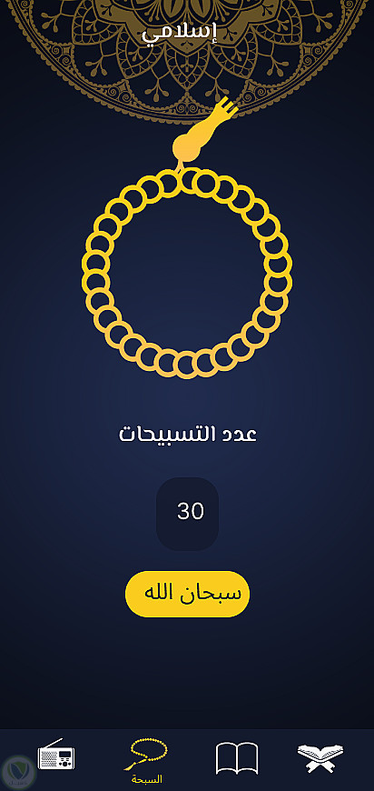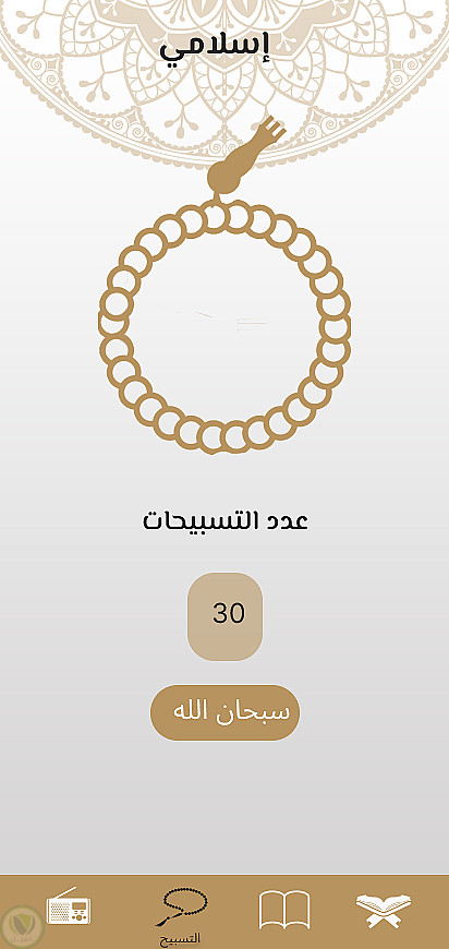 قسم الأذكار (Tasbeeh) مع عدّاد للتسبيح