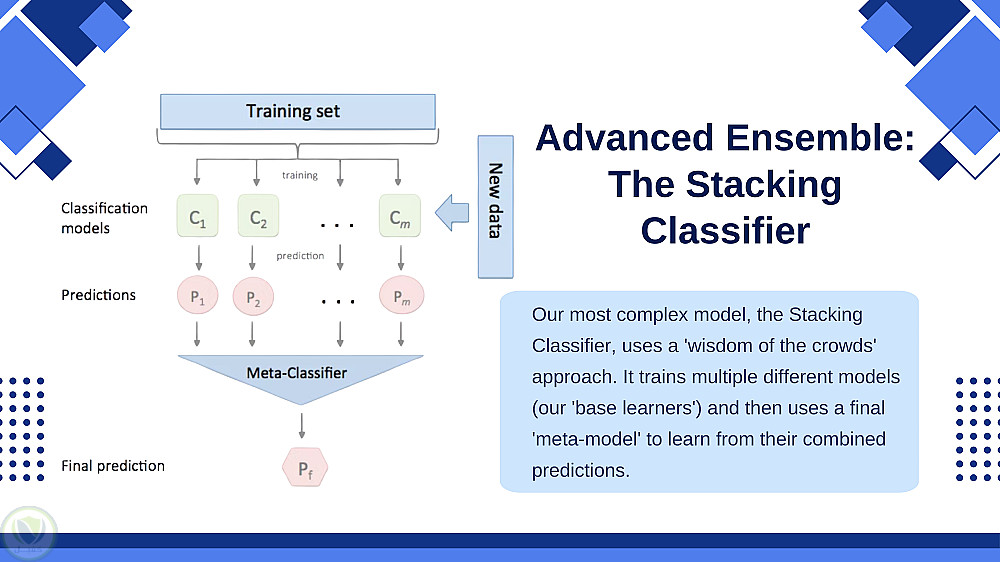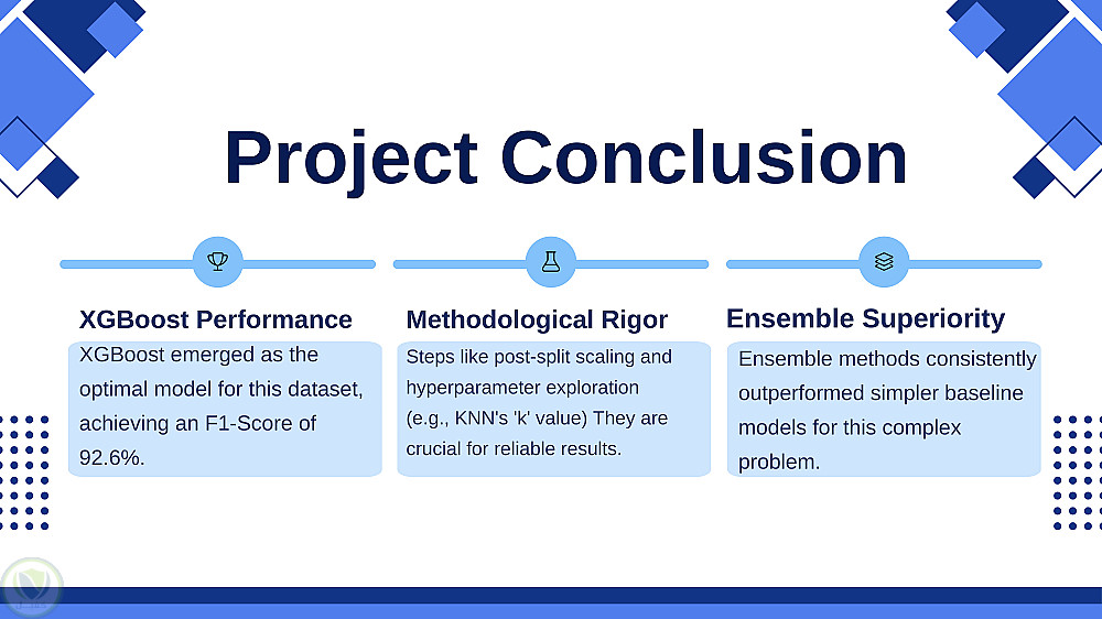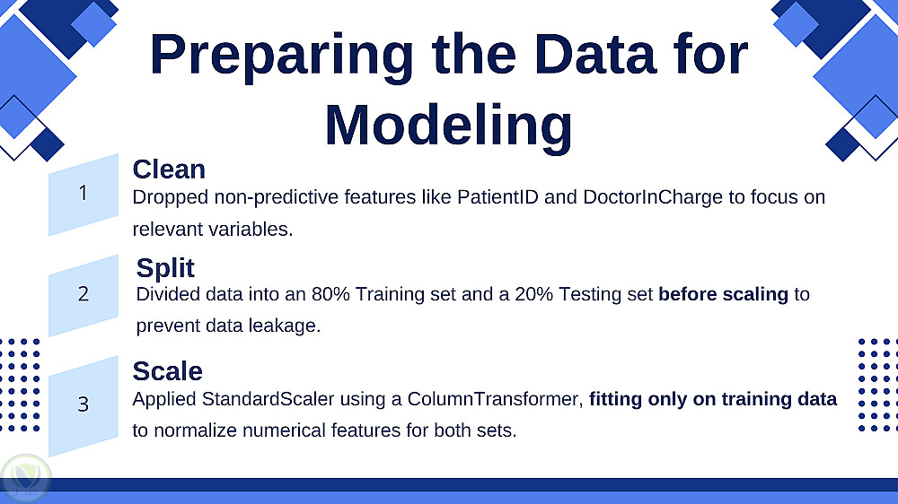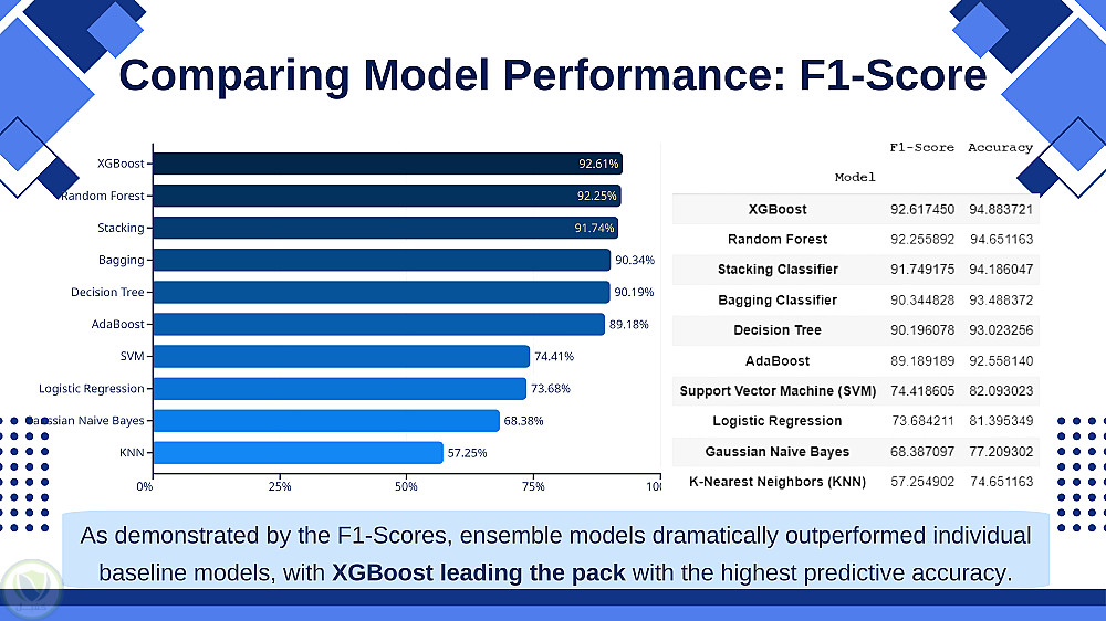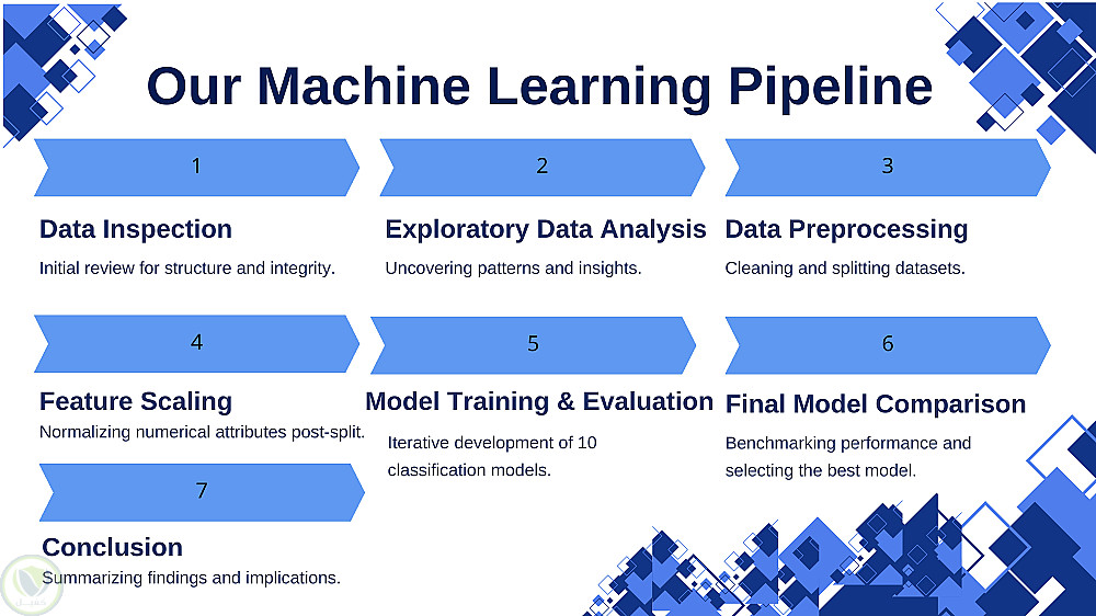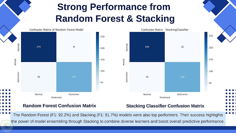 طورت مشروع تعلم آلي متكامل لتوقع وتشخيص مرض الزهايمر اعتمادًا على 2149 سجلًا طبيًا و34 متغيرًا سريريًا وديموغرافيًا. كان الهدف Diagnosis ثنائيًا 0 طبيعي و1 مصاب. نفذت Pipeline احترافي بدأ بـ EDA وتحليل الارتباطات وتحديد أهم العوامل مثل MMSE والعمر والتاريخ العائلي، ثم تقسيم البيانات 80 تدريب و20 اختبار وتطبيق StandardScaler. دربت 10 نماذج تصنيف منها Logistic Regression وRandom Forest وXGBoost وStacking. تفوقت نماذج Ensemble بوضوح، وحقق XGBoost أفضل أداء بدقة 94.8% وF1-Score 92.6%. أبرز المشروع قوة الأساليب الشجرية في التقاط الأنماط الطبية المعقدة وإمكانية تطوير النموذج كتطبيق ويب لدعم التشخيص المبكر. استخدمت Python وPandas وScikit-learn وXGBoost.