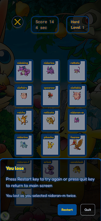 في هذه اللعبة يتم عرض جميع البطاقات مكشوفة أمام اللاعب، ويقوم باختيار بطاقة واحدة في كل دور. التحدي الأساسي هو عدم اختيار نفس البطاقة مرتين؛ ففي حال تكرار الاختيار تنتهي الجولة ويخسر اللاعب. الهدف هو اختيار جميع البطاقات مرة واحدة دون أي تكرار.