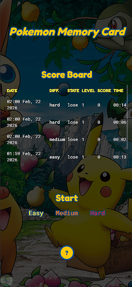 عبة **Memory Card – No Repeat Challenge** هي لعبة ويب تفاعلية قمت بتطويرها باستخدام **Angular**، وتركّز على اختبار الذاكرة وسرعة التركيز بطريقة مختلفة عن ألعاب الذاكرة التقليدية.