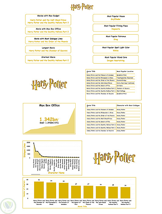 مشروع تحليل بيانات باستخدام Power BI يهدف إلى استكشاف وتحليل بيانات سلسلة أفلام Harry Potter من حيث الميزانية، الإيرادات (Box Office)، مدة الأفلام، أكثر الشخصيات حوارًا، وأكثر العناصر شيوعًا مثل البيوت، أماكن التصوير، وألوان التعاويذ. يعرض المشروع لوحات معلومات تفاعلية تساعد على فهم أداء الأفلام ومقارنة الأجزاء المختلفة واستخلاص رؤى واضحة تدعم اتخاذ قرارات مبنية على البيانات.