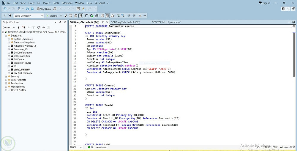 قمت بإنشاء ERD من البدايه لإيجاد ال entities,و العلاقات بينها وكمان ال attributes الخاصه بها وعملت mapping, و تنفيذها علي sql server لإنشاء الجداول بال query