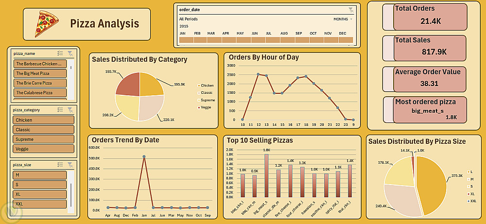 حليل بيانات مبيعات بيتزا لفهم سلوك العملاءوتحديد المنتجات الاعلى مبيعا وتحسين القرارات التسويقيه وزياده الارباح