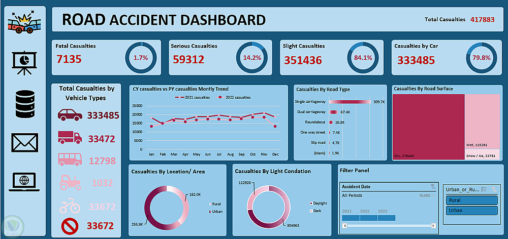 تحليل بيانات حوادث الطرق بهدف فهم الاسباب الرئيسيه وتقليل نسب الاصابات والوفيات