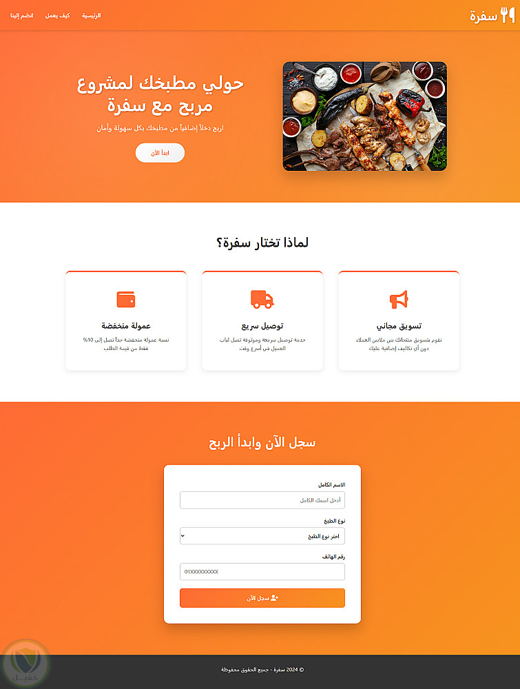 تصميم وتكويد صفحة هبوط (Landing Page) لتطبيق توصيل طعام "سفرة".