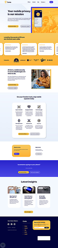 قمت بتصميم صفحة هبوط احترافية لتطبيق متخصص في حماية وخصوصية الهواتف الذكية، مع التركيز على تحسين تجربة المستخدم وزيادة معدل التحويل من خلال عرض القيمة التسويقية بشكل واضح وجذاب.
