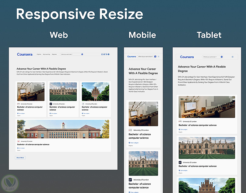 تصميم واجهة متجاوبة مرنة (Responsive Resize) لمنصة Coursera
