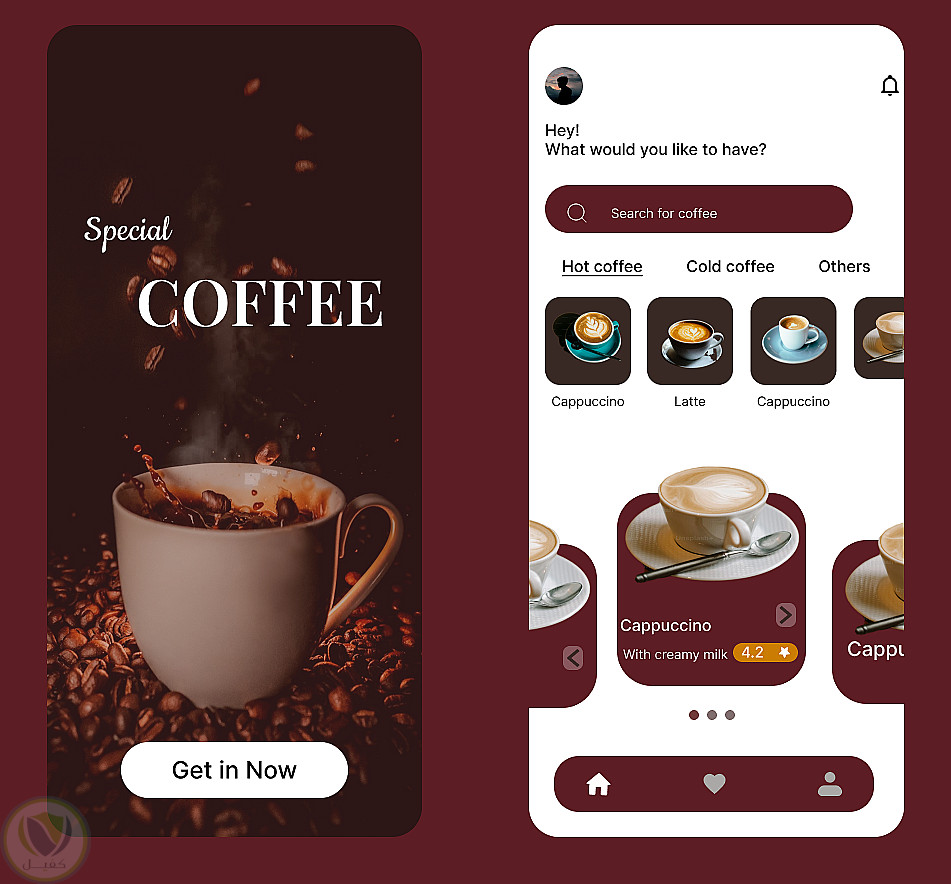 تصميم واجهة تطبيق موبايل لكافيه