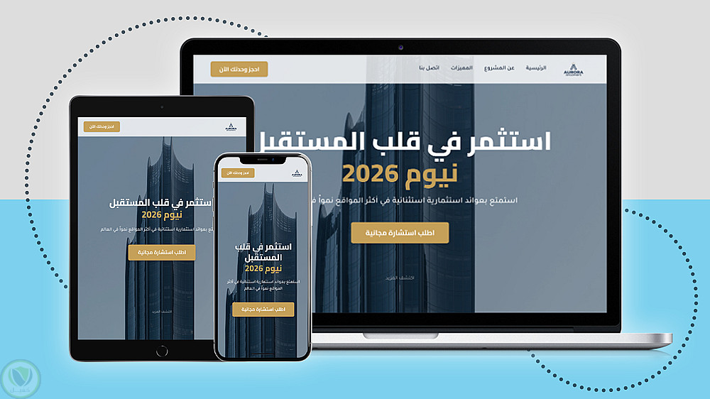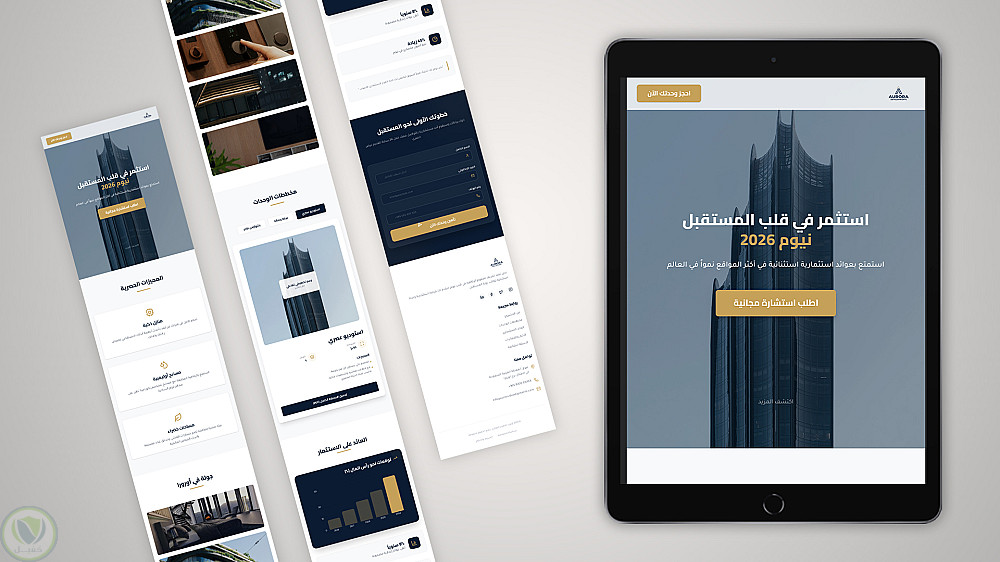 تصميم صفحة هبوط (Landing Page) عقارية فاخرة لمشروع Aurora - نيوم 2026