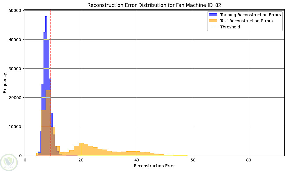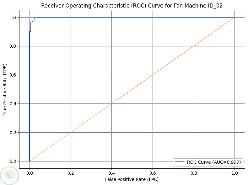 بعد تطبيع البيانات واستخراج ميزات MFCC، تم تدريب نموذج Autoencoder لتعلم الأنماط الطبيعية لتشغيل الآلة واكتشاف الانحرافات بناءً على خطأ إعادة البناء (Reconstruction Error). حقق النموذج دقة اختبار بلغت 98.7% وقيمة AUC بلغت 99.9%، مما يعكس كفاءة عالية في تطبيقات الصيانة التنبؤية والمراقبة الصناعية.